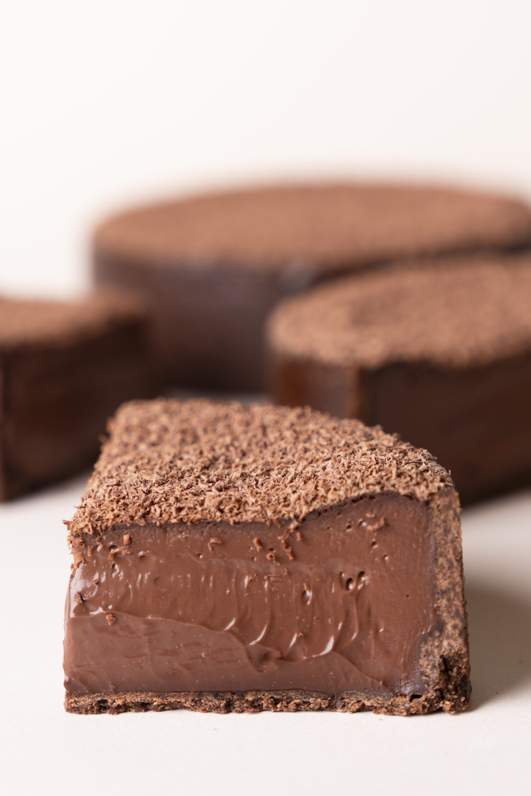 Pâte sablée au cacao garnie d’un flan au chocolat 65% Venezuela, signé Nicolas Berger.