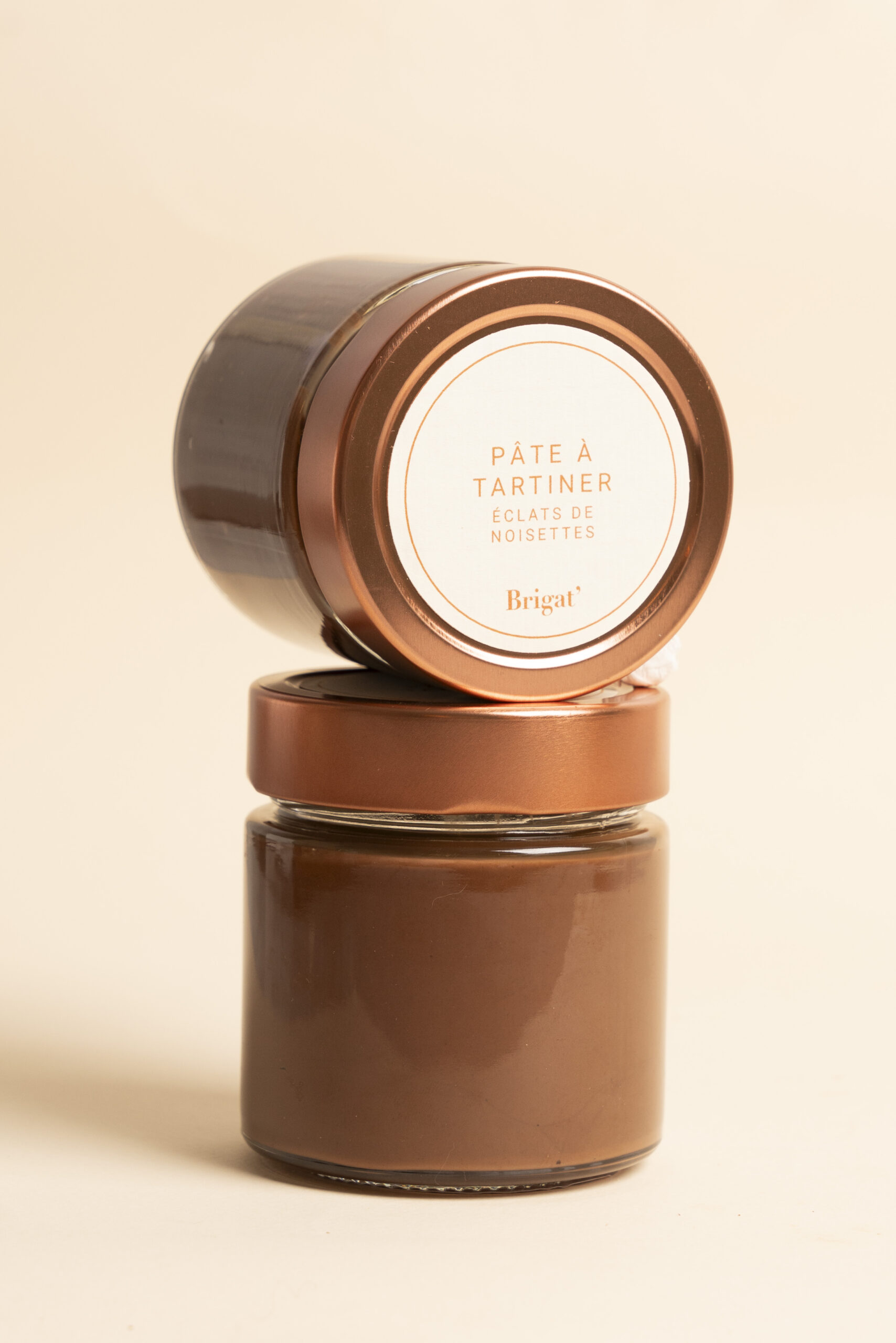 Une pâte à tartiner au chocolat lait 60% cacao, mélangée à une pâte de noisette 40%, et sublimée par des éclats de noisettes intenses